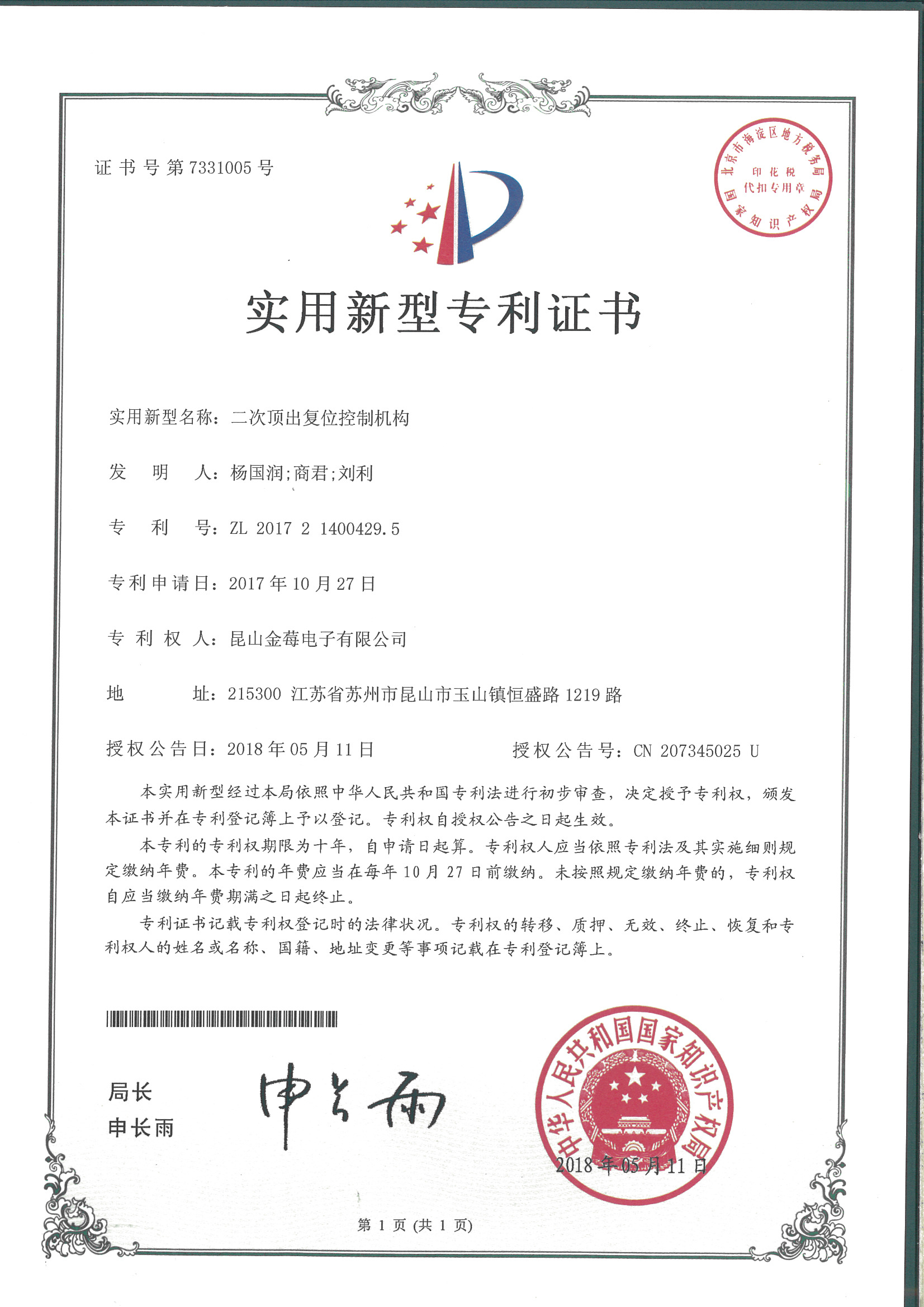 7331005專利號(hào)-二次頂出復(fù)位控制機(jī)構(gòu)