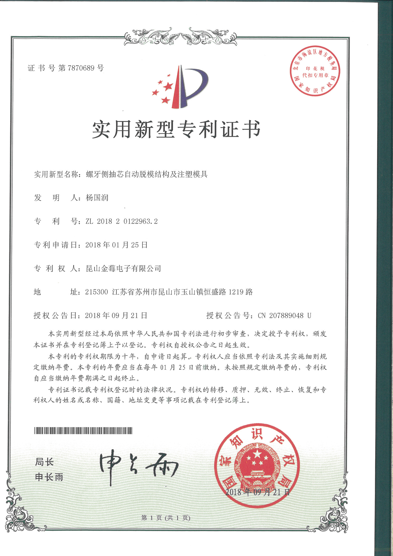 7870689專利號(hào)-螺牙側(cè)抽芯自動(dòng)脫模結(jié)構(gòu)及注塑模具