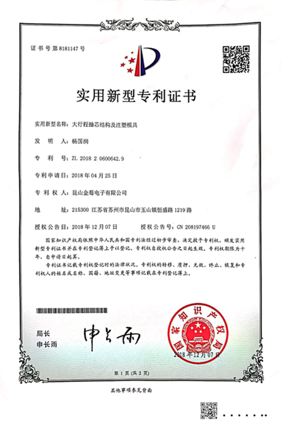 8181147專利號(hào)-大行程抽芯結(jié)構(gòu)及注塑模具