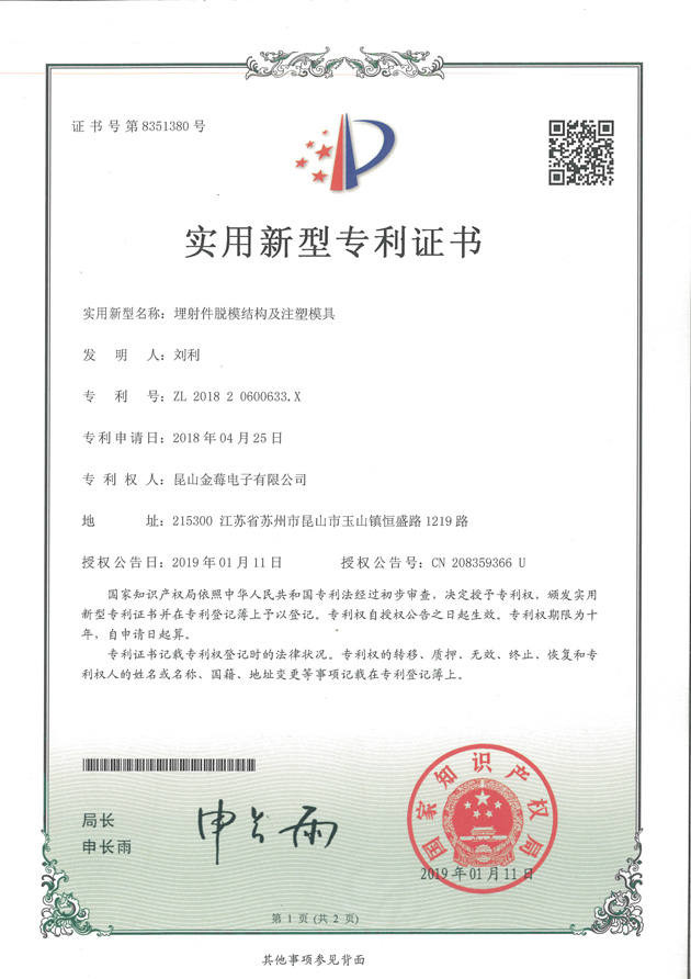 8351380專利號(hào)-埋設(shè)件脫模結(jié)構(gòu)及注塑模具