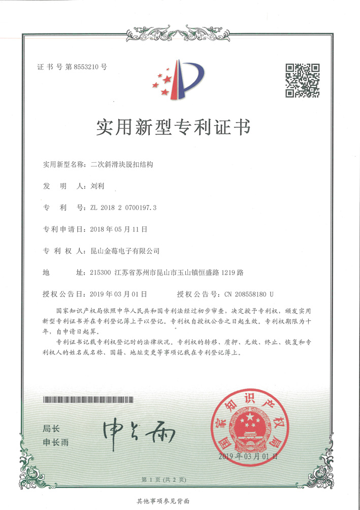 8553210專利號(hào)-二次斜滑塊脫扣結(jié)構(gòu)